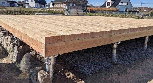 Das Hauptmerkmal einer GSA-Thermo-Holzbodenplatte ist ein Abstand von 30 bis 40 cm zum feuchten und kalten Erdreich. Das Ergebnis - beste Dämmwerte für kleine Preise.