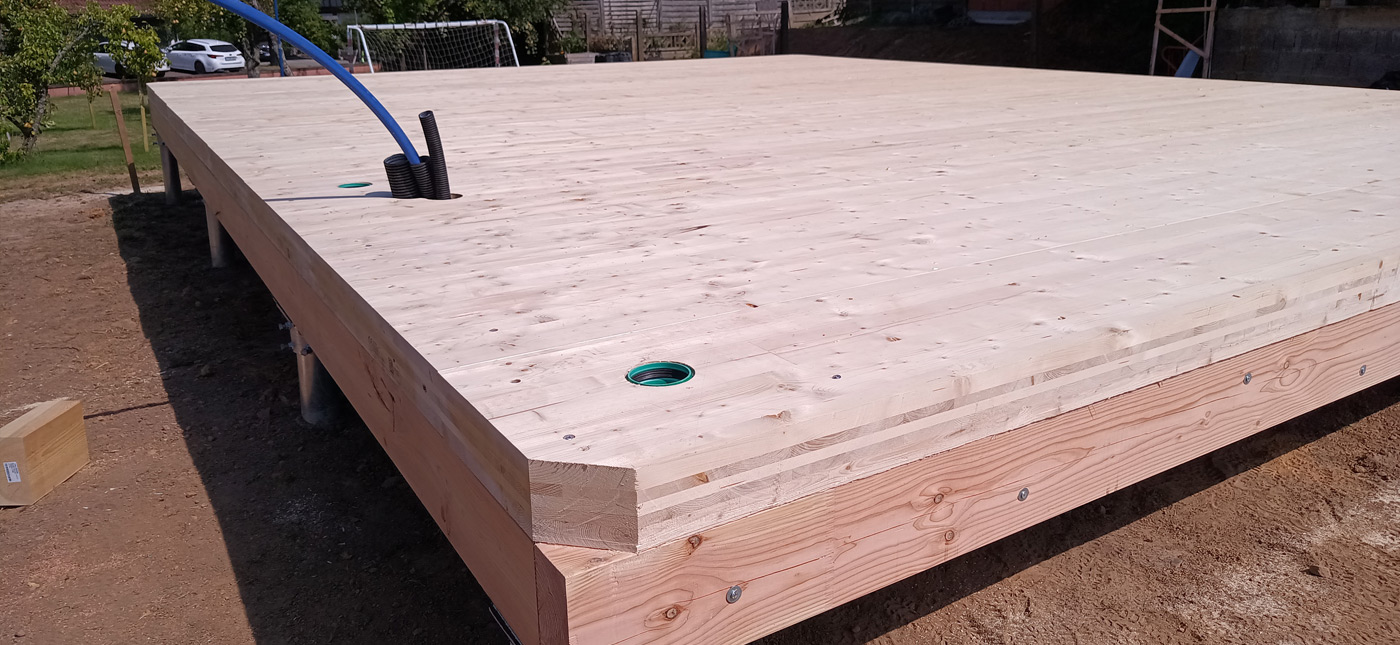 GSA-Thermo-Holzbodenplatte aus S10 Lärche als Brettstapelvariante